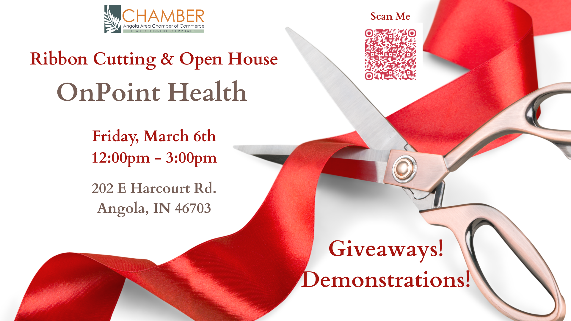 Chamber members and the community are invited to celebrate the Grand Opening of On Point Health, a new wellness and laser therapy clinic serving Angola and the surrounding area.